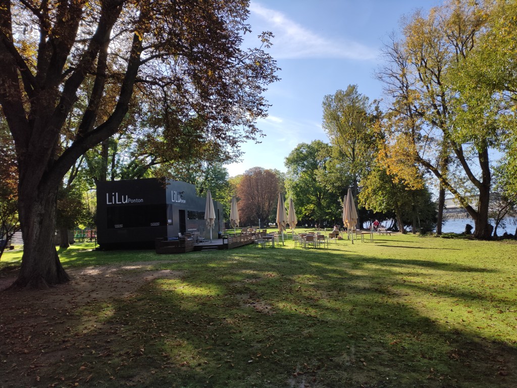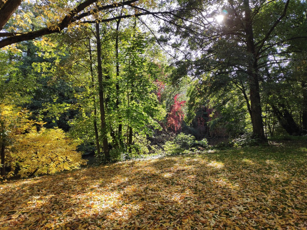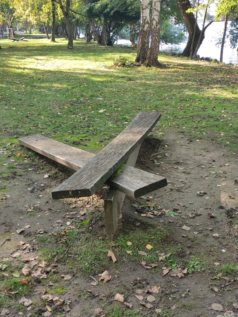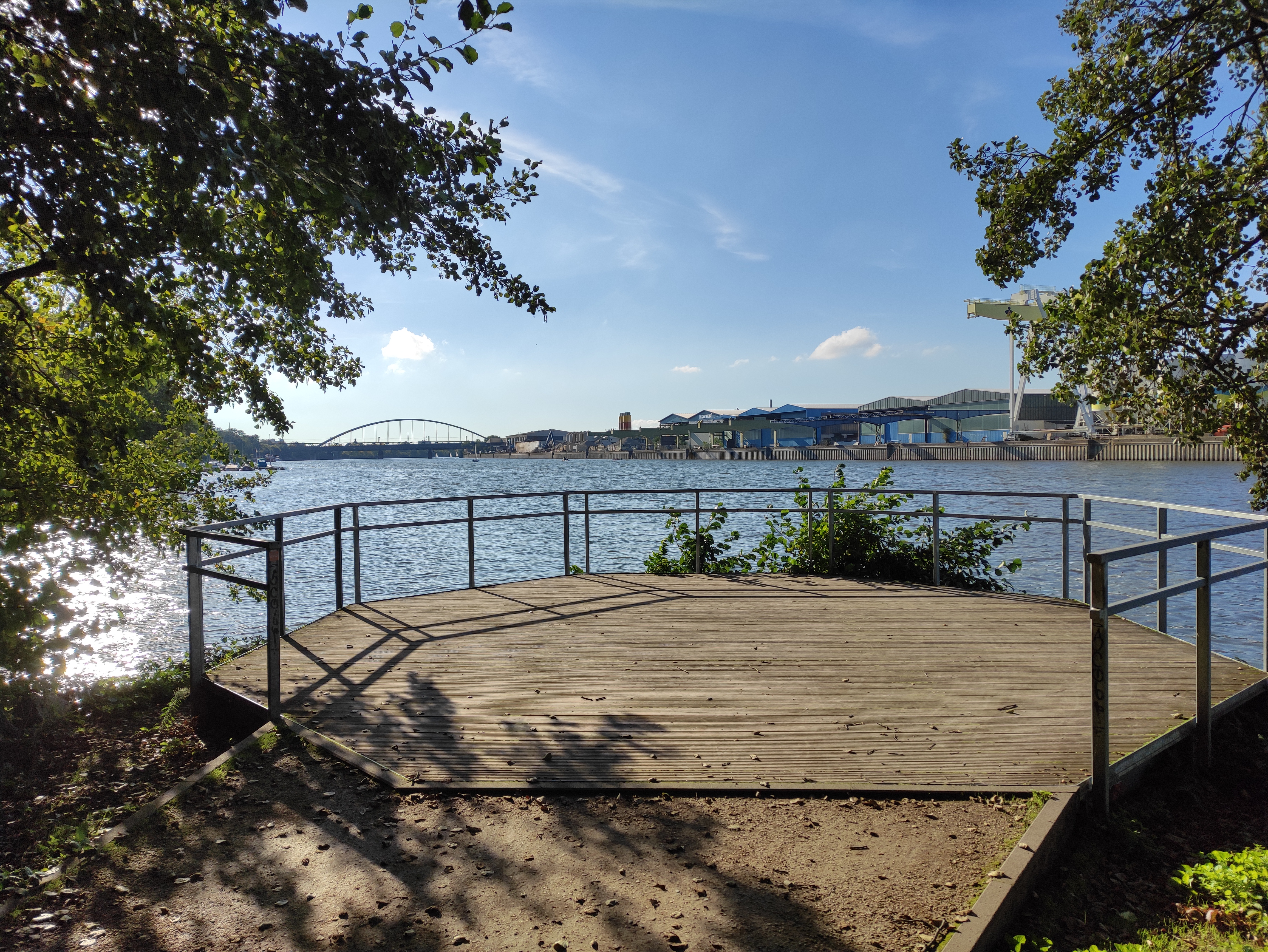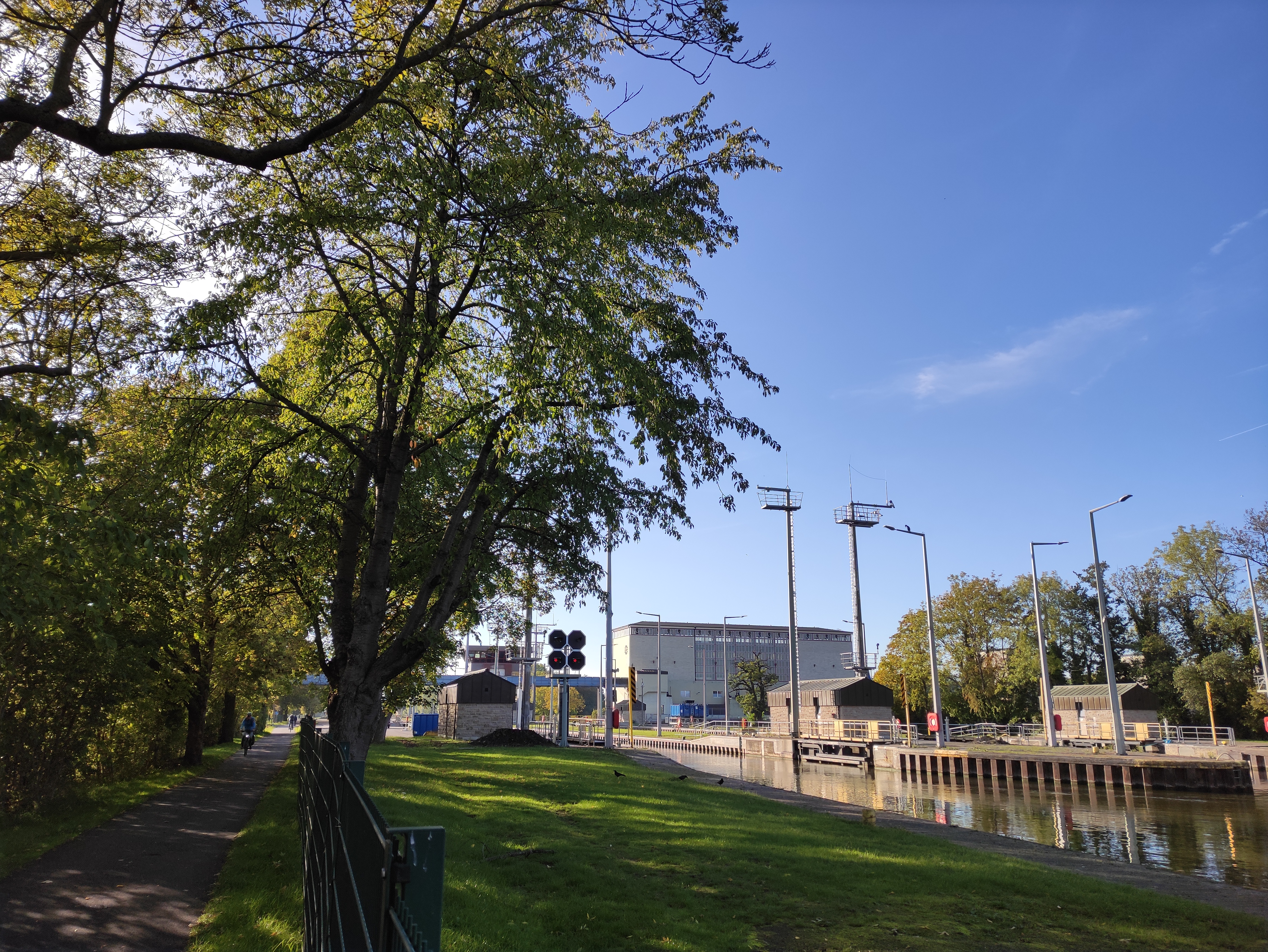 Ich fand den richtigen Weg, weg von der Straße. Wieder ging es grün weiter, immer entlang des Steinbachs. Dann eine Brücke, ich war an der Nidda. In einem Nebenarm ließen sich zwei Schwäne treiben. Jenseits der Nidda ein Park, der Volkspark Niddatal. Ich war erfreut, den Park kannte ich nur peripher. War einmal dort mit einer Freundin laufen, lang ist es her. Wir fanden fast nicht mehr raus damals, orientierten uns am Fernsehturm und der Skyline. Das der Park groß ist wusste ich, dass er so groß ist jedoch nicht. Eine Frau mit drei freilaufenden Hunden kreuzte meinen Weg. Die Tiere interessierten sich nicht für mich. Der Park wollte nicht enden, mir war`s recht. Irgendwann ein Hinweis auf den Ausgang Bockenheim. Ich konnte das Navi ausschalten, ab dort würde ich mich auskennen. Dass irgendwann eine Autobahnbrücke den Park kreuzen würde, war erwartbar.