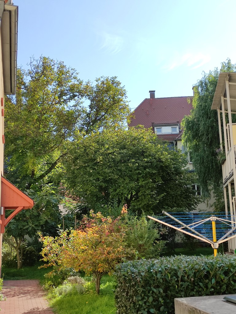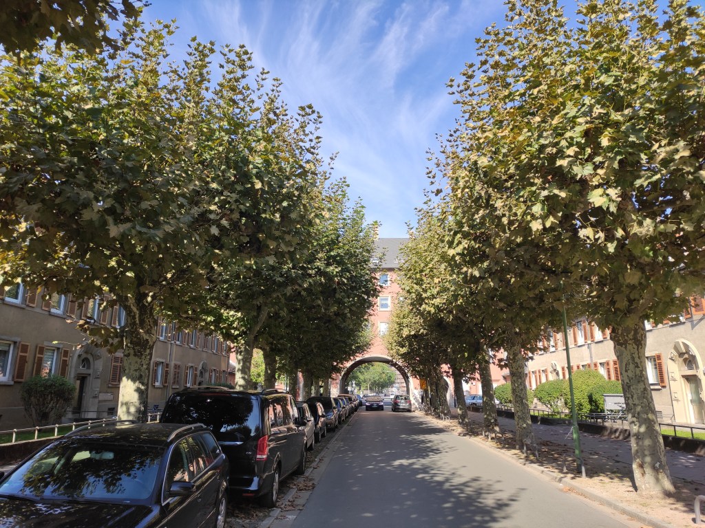 Eigentlich hatte ich Lust auf einen faulen Tag zuhause, mit Lesen, Musik hören, Kochen. Das Wetter machte mir jedoch einen Strich durch die Rechnung. Der Tag empfing mich mit herrlichstem Herbstwetter, Sonne, strahlend blauer Himmel, klare Luft, recht kühl. Das lies mir keine Wahl, Schuhe schnüren, herumgehen, Kopf lüften. Nach wenigen Minuten spazierte ich zum zweiten Mal in diesem Jahr durch die Gagernstraße im Ostend. Auffallend die breiten Gehwege, ist in Fankfurt ja nicht allzu oft anzutreffen. Es waren nur sehr wenige Passanten unterwegs, ich konnte problemlos auf die Maske verzichten. Auch Autos störten kaum die Ruhe. Ich genoss die Stille und betrachtete die teilweise recht schmucken Häuser. Hinter dem unscheinbaren Parlamentsplatz wandte ich mich nach links, bei nächster Gelegenheit wieder nach rechts. Wenn ich irgendwo gerne wohnen würde, dann am Röderbergweg im Frankfurter Ostend und zwar in vorderster Reihe. Grzimek soll hier irgendwo gewohnt haben. Der Blick ist sensationell.