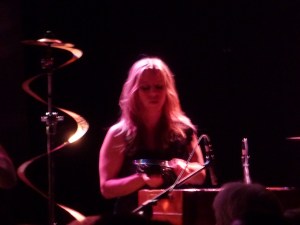 Umso überraschter war ich, dass sie die Bühne des „Gebäude 9“ nur in Begleitung eines Schlagzeugers betrat. Shara sang, spielte Gitarre, Ukulele, Keyboards sowie diverse andere Instrumente und es wurde teilweise sehr laut und rockig. Das war keine reine Vorstellung des neuen Albums, sondern ein Querschnitt durch das bisherige, so großartige, Schaffen von My Brightest Diamond. Auffallend war die Farbgebung, die auch beim neuen Album vorherrscht. Sind bei den beiden Vorgängeralben eher zurückhaltende, dunkle Farben prägend, so wird das Albumdesign bei „All Things Will Unwind“ durch die Farbe Rot bestimmt. Das Cover des Albums, man muss es nicht schön finden, das Bühnenoutfit, all das strahlte so viel Optimismus aus, dass man sich dem nicht entziehen konnte, was man freilich auch nicht wollte. Selbst der Drummer, Brian Wolf, trug auf seiner ansonsten schwarzen Kleidung, rote, gelbe und orange Filzapplikationen.