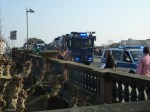 Ich habe nicht gesehen, was im „Frankfurter Kessel“ geschehen ist, aber ich habe viele Menschen gesehen, die von Pfeffersprayattacken der Polizei verletzt waren. Sie wurden auf dem Ver.di-Wagen provisorisch ärztlich versorgt. Dieser Wagen diente dann auch als Bühne für die improvisierte Abschlussveranstaltung, die vor der EZB geplant und genehmig war. Einen sehr eindrücklichen Bericht über die Situation im Kessel gibt es hier .