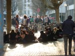 Der Baseler Platz war schon gut gefüllt und noch immer strömten Menschen dazu. Ich war mit meinem Freund Joe aus Stuttgart verabredet, der in einem Sonderzug mit fünfhundert Aktiven aus der Bürgerbewegung gegen Stuttgart 21 nach Frankfurt unterwegs war. Der Zug kam zweieinhalb Stunden später an. Jemand hatte sich aufs Gleis geworfen.