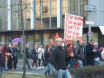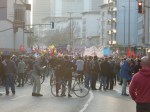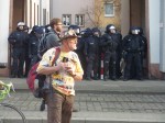 Wie schon im letzten Jahr hielt ich mich in der Nähe des Attac-Wagens auf. Dieser Wagen bildet das Ende des Demonstrationszuges, daher habe ich erst nicht mitbekommen, was sich an der Spitze zutrug. Dass eine Demo mal stockt ist normal. Aber diese Demo stockte nach wenigen hundert Metern, stundenlang. Die Polizei hatte mehrere hunderte Menschen unter fadenscheinigen Argumenten eingezingelt und erst viele Stunden später, und nach Aufnahme der Personalien, wieder freigelassen. Die Demonstration stand auf der Stelle und das Angebot der Polizei, sie auf einer anderen Route und ohne die „Störer“ weiterzuführen, wurde abgelehnt. Alle blieben und beharrten auf ihren grundgesetzlich garantierten Rechten.