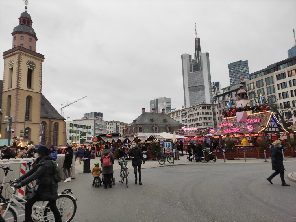 Die Berger zieht sich über vier Kilometer von der Innenstadt durch das Nordend und Bornheim bis nach Seckbach. Sie ist die Haupteinkaufsstraße der beiden Bezirke. Daher nehme ich auf meinem donnerstäglichen Spaziergang meist diese Route. Die Straße ist stets belebt und es gibt was zu sehen. Gegenüber der katholischen Kirche an der Ecke Eichwaldstraße hat im letzten Jahr ein hessischer Devotionalienladen eine neue Filiale eröffnet. Auf die Inhaber dieses Ladens habe ich mich vor einigen Jahren mal zu sehr verlassen. Es war der wahrscheinlich größte Fehler meines Lebens. Anfangs wechselte ich immer die Straßenseite, wenn ich dort vorbeiging, mittlerweile nicht mehr. Rechterhand folgt das seit Jahren verlassene Gebäude des Elektrokaufhauses Saturn, Frankfurter reden immer noch von „Saturn-Hansa“. So hieß das wohl mal vor vielen Jahren. Gegenüber des toten Gebäudes stehen seither einige Läden leer. Immer wieder rauschen neue Pläne und Gerüchte durch den Blätterwald, was aus der Immobilie werden soll. Passieren tut nichts und so steht der hässliche Klotz sinnlos in der Gegend rum und verschandelt das Stadtbild. Allerdings dient der ehemalige, überdachte Eingangsbereich einigen Obdachlosen als Schlafplatz.