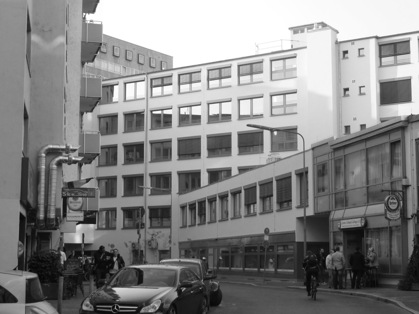 Die Lesung sollte um 20 Uhr beginnen und pünktlich war der Raum voll. Einige mussten stehen. Neben mir am Lesungstisch saßen Andrea Diener von der FAZ, Katja Thorwath von der Frankfurter Rundschau sowie der Autor, Schauspieler und Kabarettist, Philipp Mosetter. Alle vier hatten auch schon bei den Frankfurter Wegsehenswürdigkeiten mitgewirkt. Andrea, Katja und ich bestritten die erste Hälfte und die zweite gehörte Philipp Mosetter. Eine Zugabe hatten wir nicht eingeplant, sie wurde aber wunderbarerweise gefordert. Moppel Wehnemann erklärte sich spontan bereit und las ihren Text, ohne das vorher geübt zu haben. Während der Lesung wurden in Dauerschleife die Fotos von Georg Dörr an die Leinwand projiziert. Sie sind auch teilweise im Buch zu sehen. Am Schluss war der Raum noch immer gefüllt, es gab Beifall, und der Büchertisch wurde belagert. Nicht nur Vom Warten wurde gekauft, sondern auch die Bücher von Andrea Diener und Philipp Mosetter. Es war ein sehr schöner und erfolgreicher Abend, der bei Wein und guten Gesprächen seinen Abschluss fand. Gegen 1 Uhr baten uns Gabi und Hubert, unsere wunderbaren Gastgeber von Buch und Wein, langsam den Heimweg anzutreten.