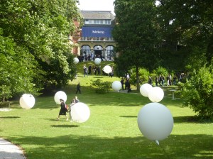 Der Donnerstagabend ist traditionell dem Fest des S.Fischer Verlags vorbehalten. Da trifft man dann alle, die man sonst im Messetrubel nicht trifft. Entsprechend voll ist es immer. Und so ist die Ankündigung „Bis heute Abend bei Fischer“ mit Vorsicht zu geniessen. Viele trifft man eben doch nicht dort, oder wenn, reicht es oft nur zu einem kurzen Gruß. Ich habe etliche Leute nicht gesehen, obwohl sie da waren. Aber meinen ehemaligen Kollegen und Freund Florian Andrews begegnete ich beim Fischerfest. Wir belegten einen Stehtisch im hinteren Teil des Verlagshofes und verließen den auch den ganzen Abend nicht mehr. Die Kellner hatten unseren Tisch fest in ihre Route eingeplant, so dass an Wasser und Wein kein Mangel herrschte. Viele Bekannte und Unbekannte fanden sich im Laufe des Abends an unserem Tisch ein. Es war unterhaltsam und kurzweilig und um kurz nach zwölf war wie immer Schluss.