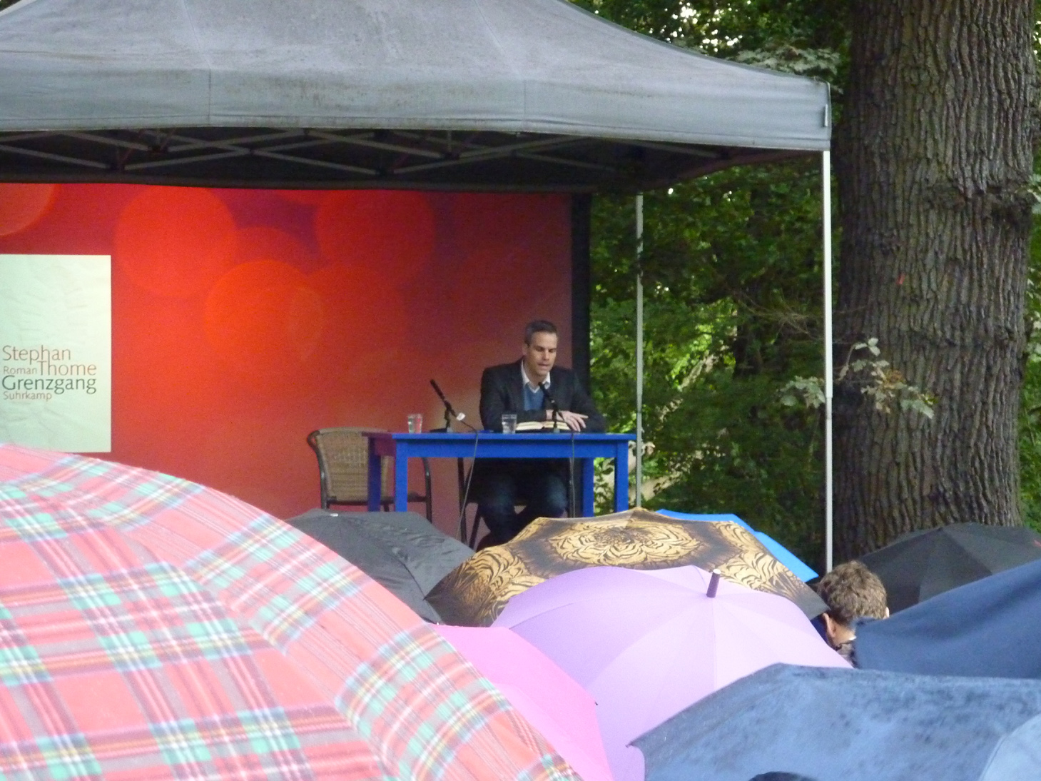 Am Freitag traf ich Stephan Thome am Suhrkamp Stand. Wir plauderten ein wenig und ich lies mir seinen wunderbaren Roman „Fliehkräfte“ signieren. Sein erstes Buch, „Grenzgang“ hat mir allerdings noch besser gefallen. Der Roman ist ein Meisterwerk und „Fliehkräfte“ kommt nicht ganz an ihn heran.